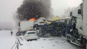 A massive 150-vehicle pileup in Michigan has claimed the life of a Canadian trucker.