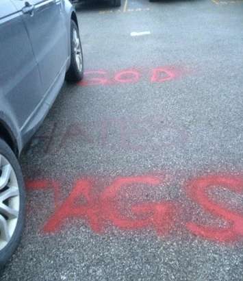 Catholic board communications director Stephen Fields says students and teachers arrived at St. Anne High School Friday morning to find derogatory messages against the LGBT community spray painted on the pavement. "We were shocked and disgusted and appalled by what was painted in the parking lot of our school," says Fields. "We try to promote a very accepting and inclusive environment in our schools and this flies in the face of everything we are trying to promote in our schools. We are looking at this very, very seriously."