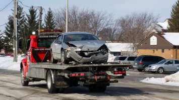 A crash at the intersection of Lacroix St. and Grand Ave. in Chatham, Feb. 10, 2015. (Photo by Jake Kislinsky)