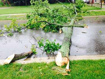 Damage including downed trees and snapped hydro lines were reported near Groves Hospital immediately after the line of storms moved through.