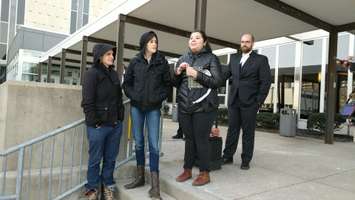 Supporters gather for pipeline protesters Jan. 13, 2017 at Sarnia courthouse. (Photo by Jake Jeffrey)
