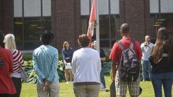 A symbolic flag-lowering marked the occasion at Great Lakes Secondary School, the former SCITS on Wellington Street.