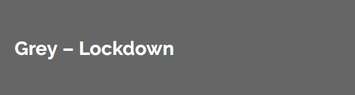 The Grey-Lockdown level prohibits organized public events and social gatherings, except with members of the same household. Indoor and outdoor service is prohibited at restaurants and bars.