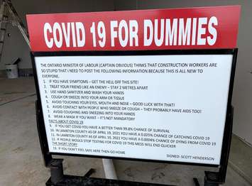 In response to those signs, Henderson released "COVID 19 FOR DUMMIES" posters all around his job sites in Sarnia.