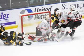 However, Owen Sound tied things up which lead to the game going into overtime and then a shootout. Benjamin Gaudreau was in net for Sarnia.