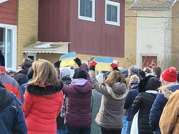 Hundreds gathered in Sarnia Sunday to show their support for Ukraine as the invasion by Russia entered its fifth day.