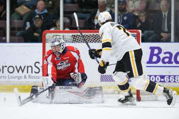 Sting goaltender Ben Gaudreau made 29 saves on 34 shots, while Windsor netminder Mathias Onuska turned away 25 shots.