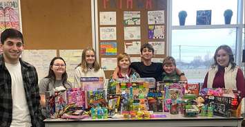 A Grade 7/8 class in Sarnia helped Enactus Lambton collect two carloads of toys for the Inn of the Good Shepherd.