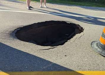 A section of Lakeshore Road is closed to traffic because of a sinkhole.