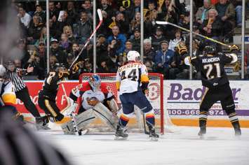 Hayden Hodgson got the home team on the board in the first minute, Kevin Spinozzi followed with a shorthanded goal two minutes later and Jordan Kyrou continued his strong play with a goal at 12:58.