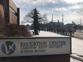 In Sarnia, elementary teachers gathered outside the Lambton Kent District School Board Education Centre on Wellington Street for the second day in a row to participate in the second province-wide walkout in less than a week.