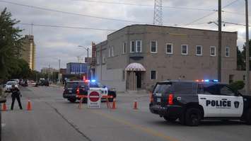 Sarnia Police Service cordon off an area around the Riverport Tavern at Front Street and Wellington Street. 11 September 2020. (BlackburnNews.com photo by Colin Gowdy)