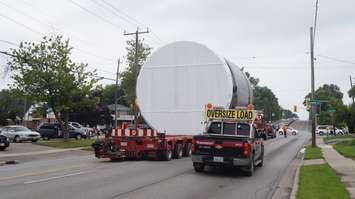 Oversized load corridor sign at Blackwell and Confederation in Sarnia. January 2022. Photo by Sue Storr.
