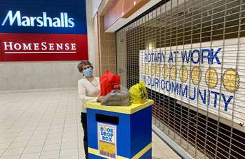 Dale Wilcox of the Rotary Club of Sarnia Bluewaterland accepts donations to the club's used book sale. January 2022 Photo provided by John Hus.Dale Wilcox of the Rotary Club of Sarnia Bluewaterland accepts donations to the club's used book sale. January 2022 Photo provided by John Hus.