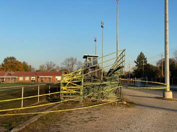 The bleachers at Sarnia's Norm Perry Park taped off. November 1, 2022 Photo by Melanie Irwin