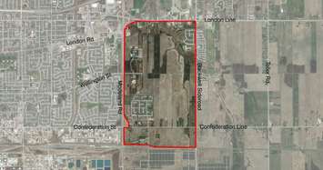 The current space includes approximately 570 hectares of land bounded by London Line, Blackwell Side Road, the CN Rail yard (south of Confederation Line), and Modeland Road.
