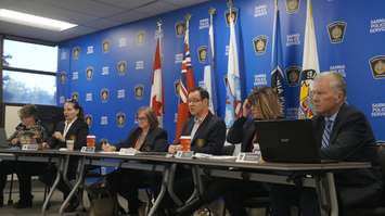 Sarnia Police Chief Derek Davis and Deputy Police Chief Julie Craddock during a Police Services Board Meeting. 12 October 2023. (Photo by SarniaNewsToday.ca)