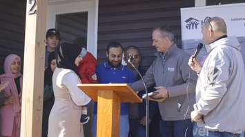Two families who have made Canada their home profusely thanked Habitat for Humanity Sarnia-Lambton after they received the keys to their new homes in Forest.