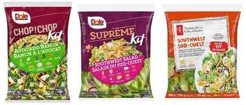 Dole's 319 gram Avocado Ranch Chop Kit with best before dates between February 6 and February 20 and 369 gram Southwest Salad Supreme Kit with best before dates between February 3 and February 18 are being pulled from store shelves. As are President's Choice's 369 gram Southwest Salad Kit with best before dates up to and including February 18.