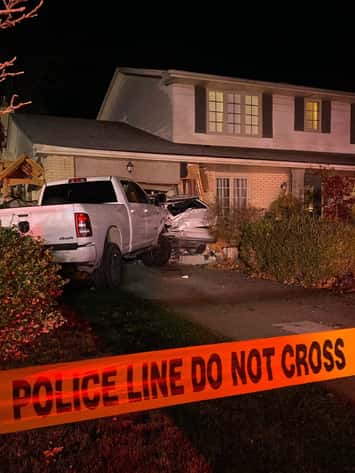 Police responded to the crash just before 1:40 a.m. in the area of Winchester Crescent and Wiltshire Drive. Officers discovered a white truck had collided with a parked vehicle in a driveway of a home on Winchester Crescent.