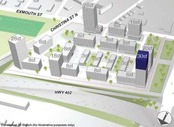 Proposed plans for the site located at Exmouth Street and Christina Street North include mixed-use development for residential and retail uses and a high-rise, read a public notice.