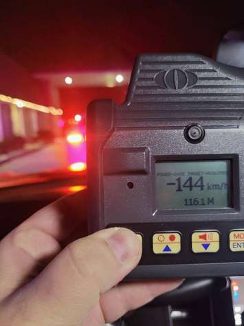 Police said the radar unit indicated the car was going 144 kilometres an hour in a posted 50 km/h zone.