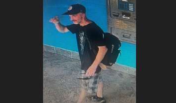 Lambton OPP is asking for help in identifying a man accused of damaging a change machine at a Petrolia business and stealing an undisclosed amount of money.