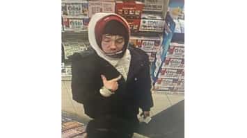 The suspect is described as a man who wore a black coat over a white hoodie, over a red hoodie. Police said he wore a balaclava and pulled it up continuously to obscure his identity.