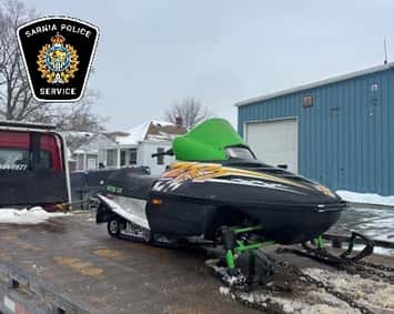 Sarnia police said officers spotted the snowmobile travelling westbound on the sidewalk of Confederation Street, near Brock Street, and when they tried to pull it over, the operator sped up and tried to flee, running a red light in the process.