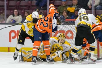 Goalie Patrick Quinlan made a huge stop in the third period for the Sting, earning him 'Save of the Night' honours. He turned away a total of 17 shots.