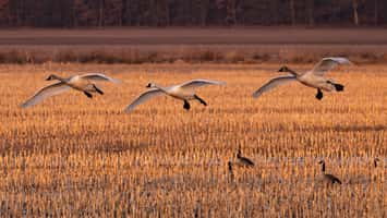 As many as 15,000 swans may rest in the Thedford Bog at a time.
