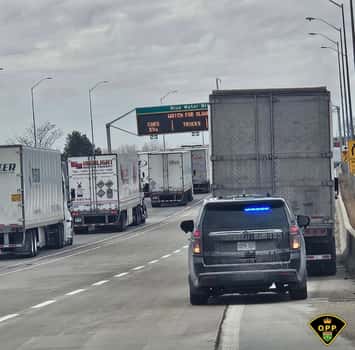 Lambton OPP said an officer pulled over the tractor-trailer on the westbound Highway 402 near the Blue Water Bridge, after seeing the driver attending a Teams video meeting while behind the wheel.