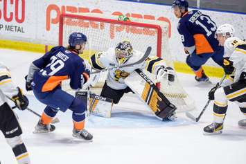 The lone goal for Sarnia came from Jacob LeBlanc midway through the third period and netminder Nick Surzycia saved 15 of 19 shots.