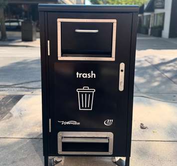 New trash enclosures are being installed in the downtown core. The bins are made for high-traffic urban environments and include a on-way deposit system.