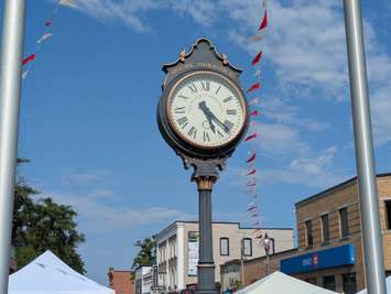 Clock at King's Navy Yard Park, Amherstburg, July 11, 2025. Photo by Mark Brown/WindsorNewsToday.ca.Clock at King's Navy Yard Park, Amherstburg, July 11, 2025. Photo by Mark Brown/WindsorNewsToday.ca.
